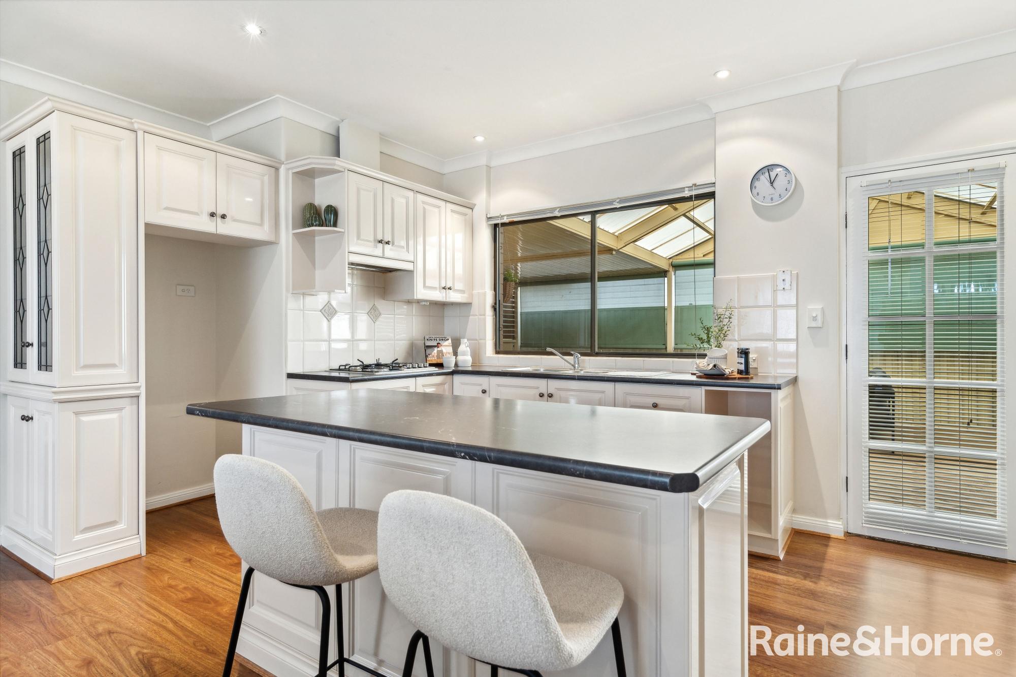 Overlooking this entire section of the home, the spacious well-equipped kitchen provides the social hub for entertaining, and comes fitted with gas cook-top, under bench oven, ample cabinetry for storage, and large island bench perfect for casual morning meals.